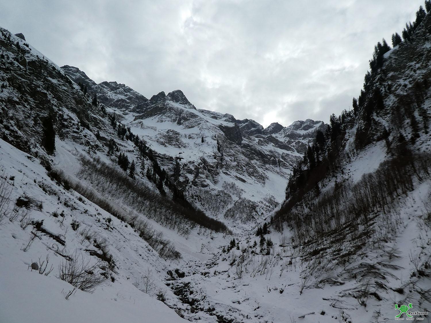 unsere Begehung war ohne vorherige Erkundung von Auto Auto 10h (wenig Schnee und lange Kälteperiode am Tag der Begehung bewölkt und -15°C)