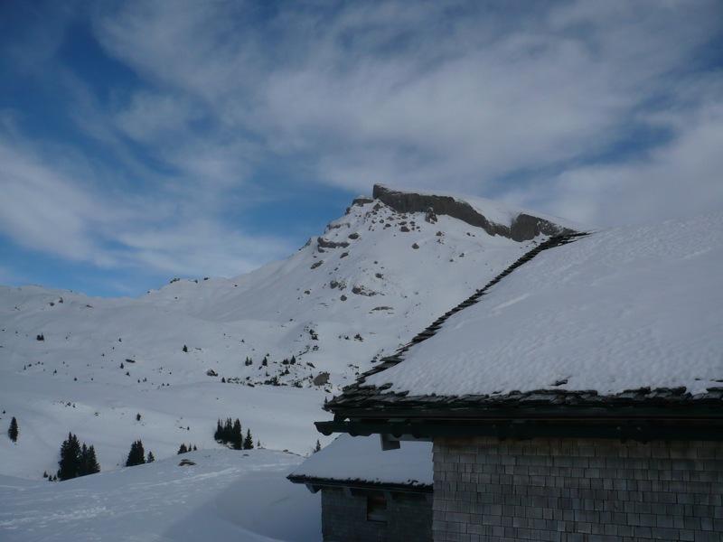 Durch den Neu-Schnee der letzten Woche überall ca. 30cm Pulver. Aber dort wo die Sonne auf den Schnee gescheint hat, hat sich schon ein Harschdeckel gebildet. Bei der Abfahrt vom Gipfel ein oder zwei „Steinchen“ erwischt, sonst genügend Schnee vorhanden. Durch die Latschen meist toller Pulver!!!