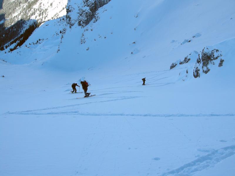 Ab der „Wannenaple“ sind wir im Rechtsbogen über schöne freie Hänge aufgestiegen zum Schüsser.
