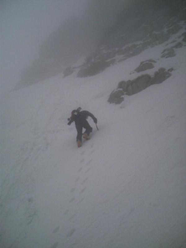 Diesen in genialer Eiskletterei überwunden sieht man das eigentliche Gully das erste mal richtig ein... kann den Schnee so steil sein?