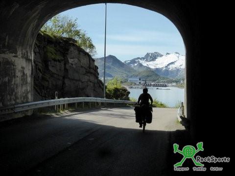 Um 8 Uhr machten wir uns zunächst auf den Weg nach Leknes, der zum warm werden über einen 135m hohen Rücken führte. Von dort unternahmen wir einen Abstecher ins Fischerdorf Balstad. Weiter ging es dann mit einer kleinen Fähre für Radler, bei der wir uns tel. angemeldet hatten, weiter nach Nusfjord, einem weiteren alten Fischerdorf. Viele Stockfische waren auf Gestellen aufgehängt und verströmten einen starken Fischgeruch. Die Überfahrt dauerte 1 Std. und wir trafen ein norwegisches Paar wieder, das wir schon mehrfach auf den Lofoten getroffen hatten. Gemeinsam gingen wir noch Kaffeetrinken, bevor wir wieder zur Hauptstraße fuhren. Den ganzen Tag ging es auf der kurvenreichen Strecke auf und ab. Der Gegenwind bremste uns etwas aus, aber die vielen tollen Ausblicke begeisterten uns während der Fahrt. Über viele Brücken und Tunnel und zahlreiche Buchten führte uns die Strecke nach Moskenes, wo wir auf dem CP unser Zelt bei vielen anderen Zelten aufstellten.