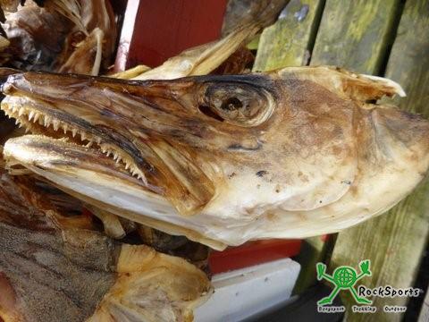 Nach einem ausgezeichneten Frühstück starteten wir zur nächsten Etappe über die Lofoten. Nach 12 Kilometern machten wir einen Abstecher nach Henningsvaer, einem ursprünglichen Fischerort. Die Strecke dorthin verlief zwischen hohen Bergen auf der einen und dem Meer auf der anderen Seite. Über 2 Brücken erreichten wir Henningsvaer, das auf 2 vorgelagerten Inseln liegt. Hier wird auf riesigen Gestellen überwiegend Kabeljau durch Trocknung haltbar gemacht (Stockfisch). Dann ging es die 9 Kilometer wieder zurück zur Hauptstraße. Auch die Weiterfahrt auf der kurvenreichen und welligen Strecke vermittelte wunderbare Ausblicke und immer wieder hielten wir an, um die herrliche Landschaft zu bewundern. Heute trafen wir viele Radler und hielten immer wieder ein längeres Schwätzchen. Später verließen wir die Hauptstraße, auf der doch recht reger Verkehr herrschte, und fuhren auf einer sehr schmalen aber auch sehr ruhigen Nebenstrecke weiter. Entgegen der Wetterprognose herrschte vielfach ein sehr böiger Gegenwind. Die zahlreichen Buchten mussten jeweils komplett umfahren werden. Gegen 16:30 Uhr erreichten wir unseren CP, der ca. 7 km von Leknes entfernt an einem See liegt und stellten dort unser Zelt auf. Hier stand uns neben einer Küche ein sehr gemütlicher Aufenthaltsraum zur Verfügung.