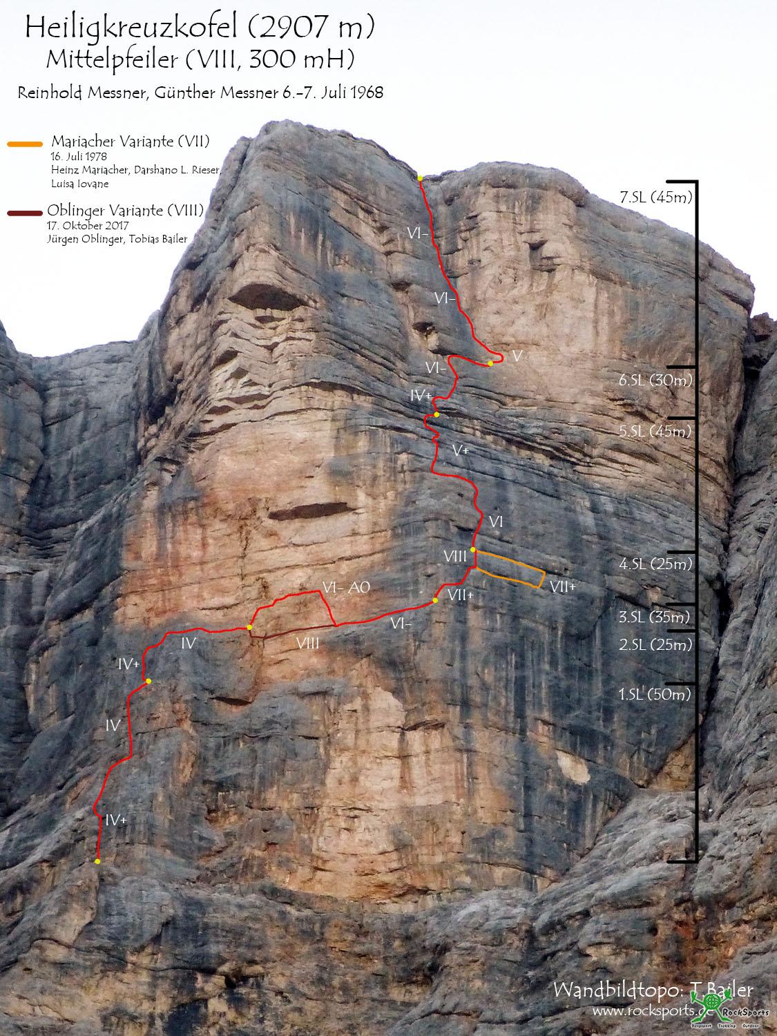 Heiligkreuzkofel - Mittelpfeiler (VIII, 300 mH), EB „OBLINGER-VARIANTE“ 17.10.17