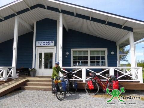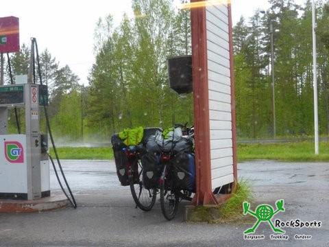 Landschaftlich ist es durch das frische Grün zwar recht schön, aber seit wir durch Finnland radeln geht es vielfach durch den Wald und die Sicht ist dadurch stark eingeschränkt. Über eine Nebenstraße ging es heute durch meist offenes landwirtschaftlich geprägtes Terrain. In vielen Gewächshäusern wurde Gemüse herangezogen. Die vielen Rapsfelder, die wir in Schweden sahen, vermissen wir hier. Nach ca. 50 km kamen wir wieder auf die E8 und so nutzten wir den guten Wind und kamen nach weiteren 50 km schon in Vaasa, unserem eigentlichen Tagesziel, um 12 Uhr an. Hier legten wir eine Mittagsrast ein und schauten uns den Ort an und erfuhren von einem Finnen, dass für morgen wieder schlechtes Wetter voraus gesagt wird. Daher entschieden wir, nicht den CP in Vaasa aufzusuchen, sondern machten uns daran, einen Teil der für den nächsten Tag geplanten Route in Angriff zu nehmen. Auch am Nachmittag kamen wir noch ganz gut voran und entdeckten in Oravais einen netten, kleinen CP, auf dem wir uns ein Hüttchen mieteten. Seit Tagen suchen wir vergeblich nach einem Internetzugang, in dem wir auch die Wettervorhersagen einsehen können.