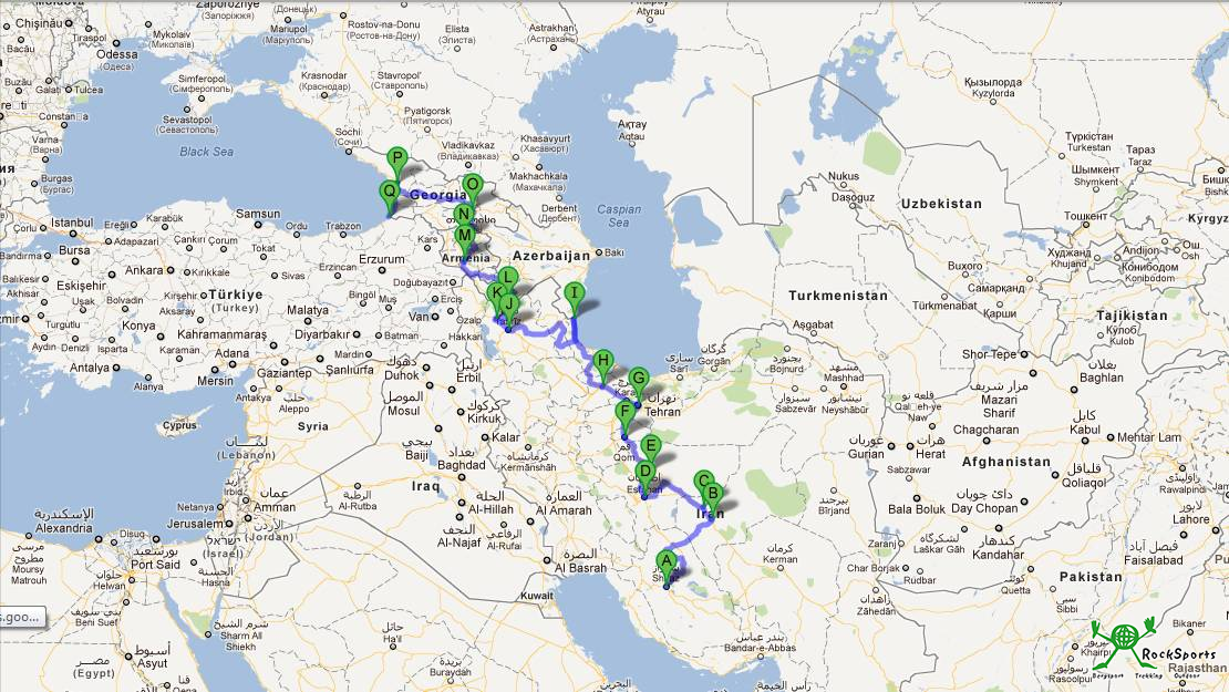Von dort aus wollen wir per Rad weiter über Yazd und Esfahan nach Teheran. Wenn es zeitlich möglich ist wollen wir von dort aus mit dem Zug nach Maschhad reisen und ein paar Tage bei Iranern verbringen, die wir im letzten Jahr in der Türkei kennen lernten, bevor es wieder nach Teheran zurück geht. Von dort soll es zum Kaspischen Meer gehen und über Ardabil weiter nach Täbris. Dann folgt der Übergang nach Armenien und durch den kleinen Kaukasus geht es nach Eriwan. Die weiteren Stationen sind Tiflis und Batumi (am Schwarzen Meer) in Georgien, bevor wir, wenn alles wie geplant verläuft, unsere Reise in Trabzon (Türkei) beenden werden.