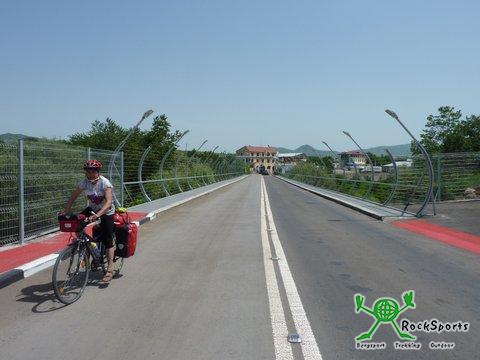 Gut gestärkt machten wir uns also wieder auf den Weg. Wir dachten eigentlich, dass es eher ein gemütlicher Tag werden würde. Aber wie meist kam es ganz anders. Schon am Morgen hatte es 22°C und es ging zunächst immer weiter bergab Richtung georgischer Grenze. Dadurch wurde es immer heißer uns schwüler und die Straße war in einem Ort verschüttet. Daher mussten wir eine Umleitung fahren. Es ging so steil bergauf, dass ich Frieda selbst beim Schieben des Rades behilflich sein musste. Außerdem handelte es sich um einen Feldweg übelster Art. Nach diesem Kraftakt war es nicht mehr weit bis zur Grenze wo alles ganz reibungslos und schnell ablief. So verließen wir nach 512 km Armenien. Ab der Grenze waren es dann noch 80 Kilometer bis Tiflis, der Hauptstadt Georgiens. Die Unterschiede zu Armenien fielen sofort auf. Die Leute waren sehr freundlich und winkten uns wieder zu. Die Straßen sind deutlich besser und auch die Bausubstanz der Häuser sieht wesentlich besser aus als in Armenien. Wir kamen nach der Grenze bis auf 340 m hinab und mussten dann in der Mittagshitze von 32°C wieder auf 672 m hinauf. Dies alles bereitete uns recht viel Mühe und wir merkten auch, dass die vielen Höhenmeter in Armenien viel Kraft gefordert hatten. Zu allem Übel zogen auch noch dunkle Gewitterwolken auf und wir mussten uns beeilen, um trocken anzukommen. Die Suche nach einem Hotel gestaltete sich recht schwierig bis sich ein Taxifahrer anbot, uns ein gutes und günstiges Hotel zu besorgen. So fuhren wir ihm 4 km durch die Stadt nach, bis wir außerhalb des Zentrums waren. Hier kamen wir zwar ordentlich unter, waren aber weit abseits des Zentrums. Außerdem zockte uns der Taxifahrer noch ab. So macht man manchmal auch seine schlechten Erfahrungen.