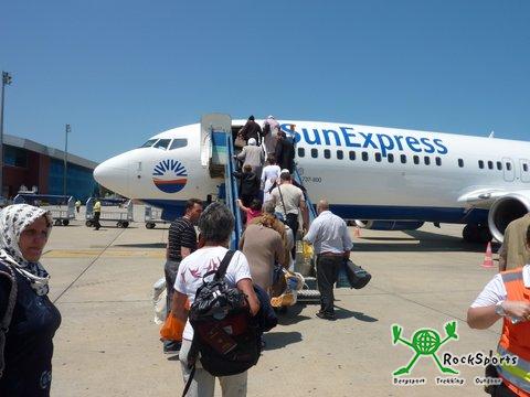 11.06.12 Rückflug von Trabzon nach Stuttgart 6 km 53 Hm Von Eriwan aus hatten wir per Internet den Rückflug von Trabzon nach Stuttgart gebucht. Heute war es dann so weit. Genau 7 Wochen nach unserem Start in Shiraz ging unsere Radreise zu Ende. Nach 3416 km und gut 20000 Höhenmetern traten wir von Trabzon aus den Rückflug an. Nach einem letzten Frühstück nahmen wir die letzten 6 km zum Flughafen bei 27°C in Angriff. Bald war dieser erreicht und wir richteten unsere Räder für den Rückflug her und gaben dann das Gepäck und die Räder auf. Alles lief routiniert ab und war bald erledigt. Der Abflug verzögerte sich um eine Stunde aber um 12:30 Uhr hob unsere Maschine ab und landete nach 3:40 Stunden in Stuttgart. Dort holten uns Silke, Christian und Timo ab und brachten uns sicher wieder nach Hause.