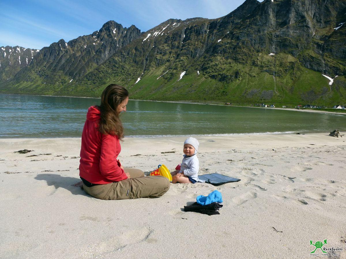 Wir genießen drei wunderschöne Tage auf Senja und übernachten in unserem Wohnwagen beim Ort Ersfjord, am wunderschönen Sandstrand. So ein Sandstrand in Mitten einer tollen Bergwelt, das hat schon was…