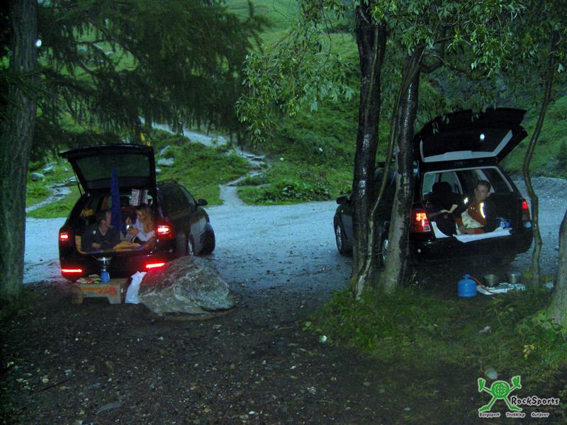 Bei der Hütte angekommen regnet es sehr stark. Rucksack packen, Regenhosen und Jacken an und abwärts ins Tal. Nach Abstieg im Dauerregen beziehen wir unser Quartier im Auto im Val Ferret.