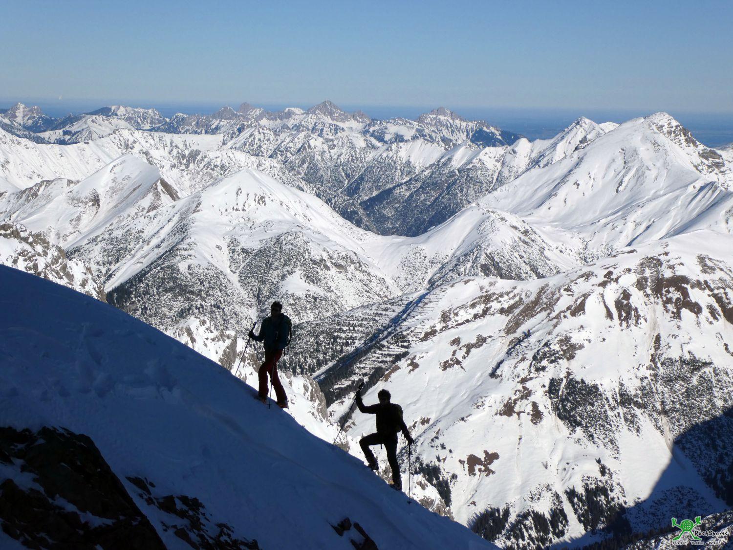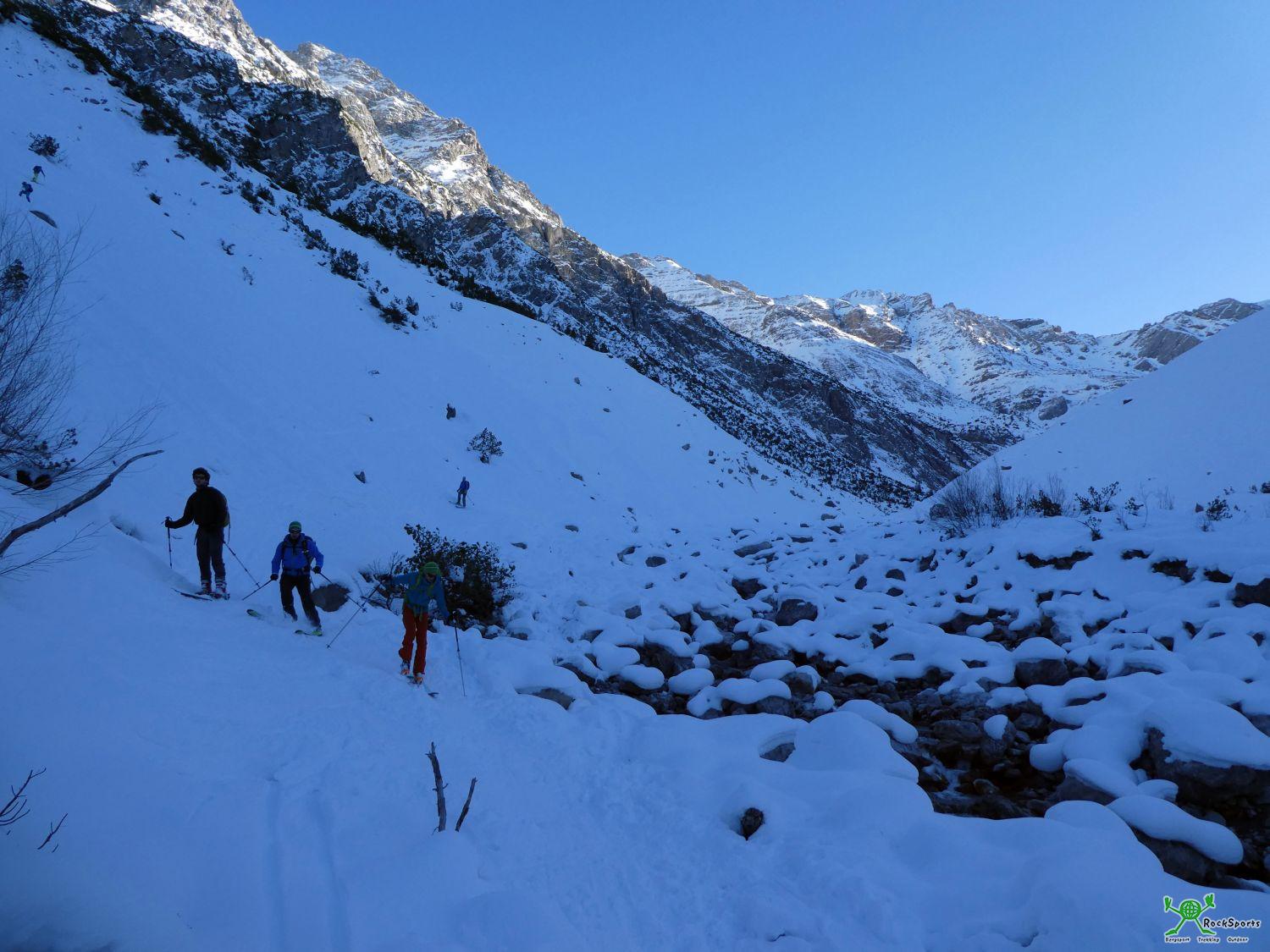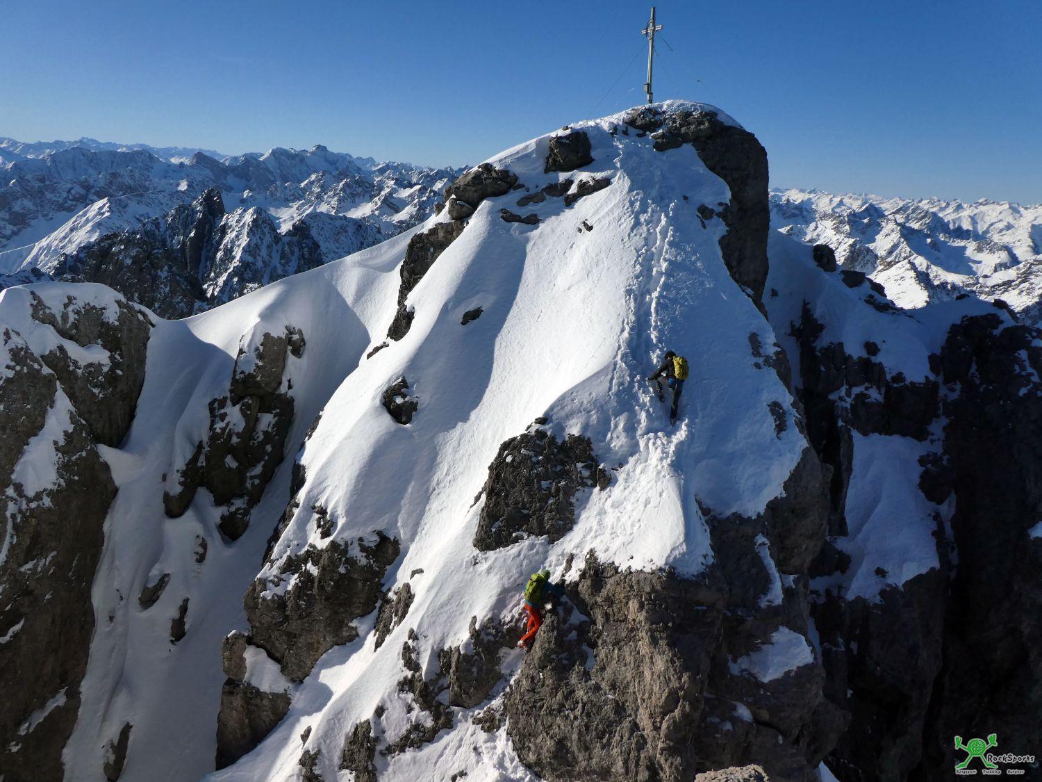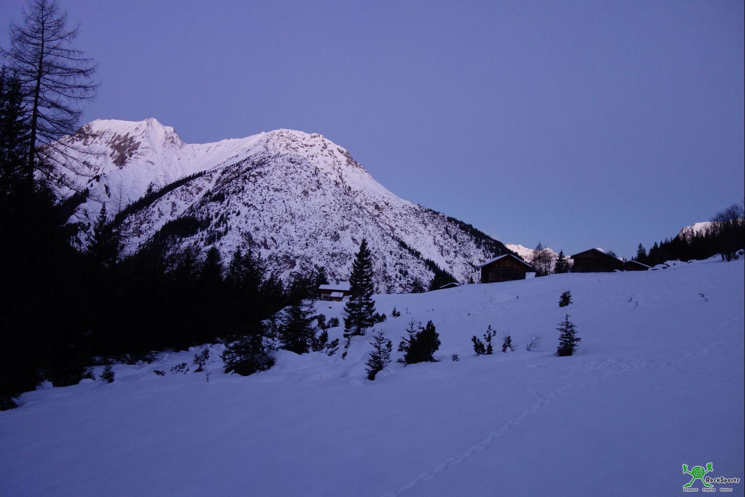 Dass die Große Schlenkerspitze ein Lechtaler Skitourenklassiker ist darf nicht darüber hinweg täuschen, dass es der Fußaufstieg ab dem Skidepot mitunter in sich hat und alpin ist. Somit auch nicht weiter verwunderlich das viele entweder es schon am Skidepot gut sein lassen, oder dann am Vorgipfel. Die anspruchvollsten Stellen kommen nämlich beim Weiterweg vom Vor-zum Hauptgipfel. Zudem ist der steile ostseitige Hang überwelchen man das Skidepot erreicht oft reichlich mit Triebschnee geladen und heikel.