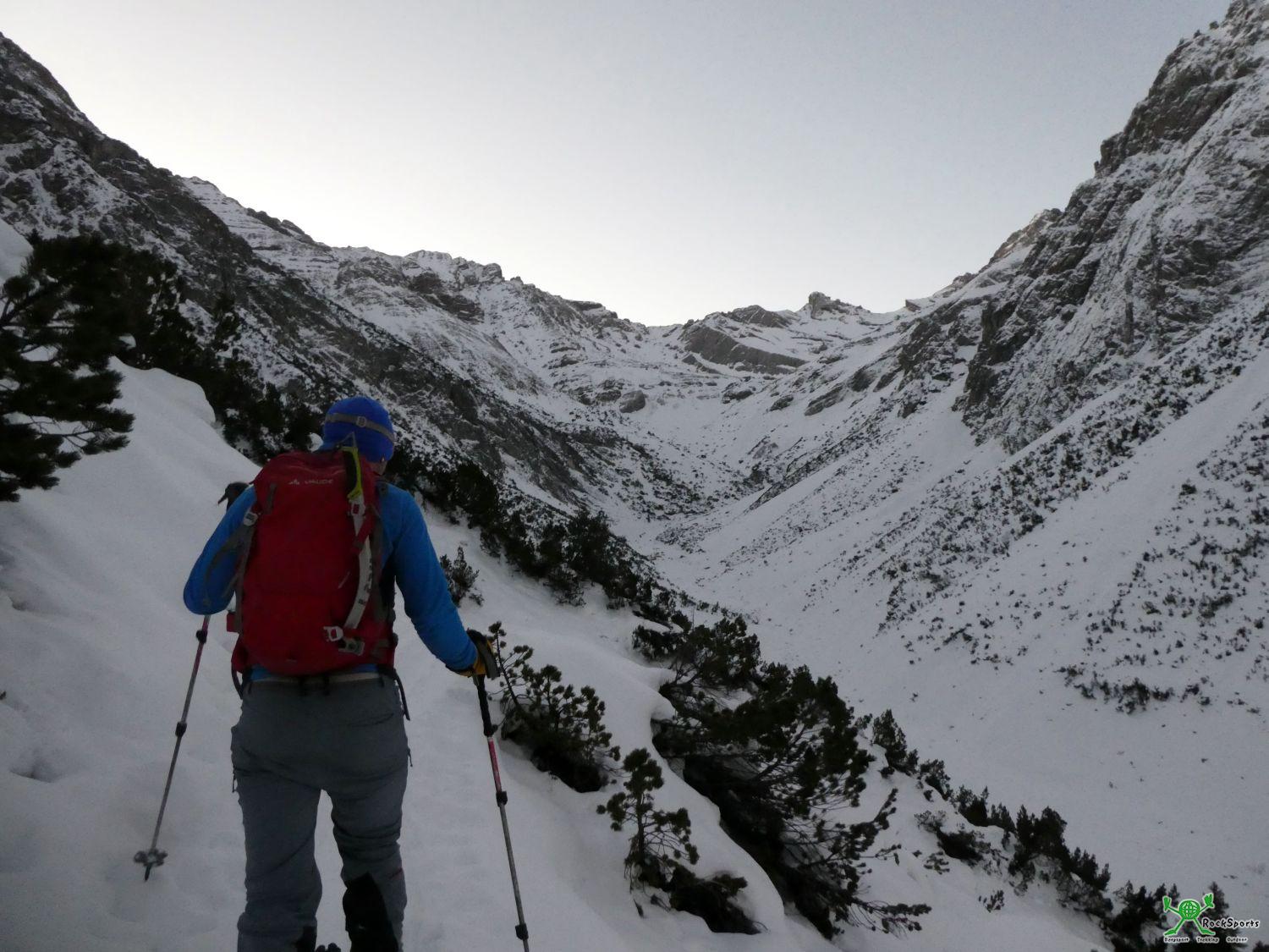 Wir stiegen allerdings nicht direkt ins Brunnkarjöchl (2510 m) auf sondern direkt in die Einschartung rechts davon (P. 2545 m)