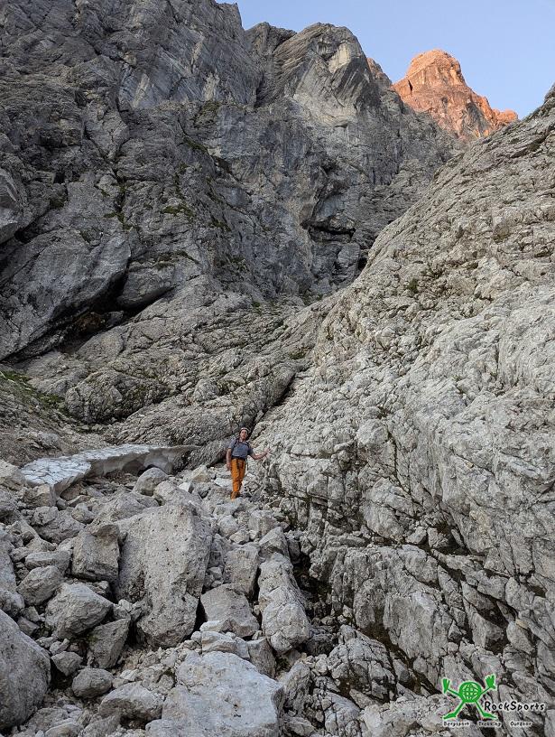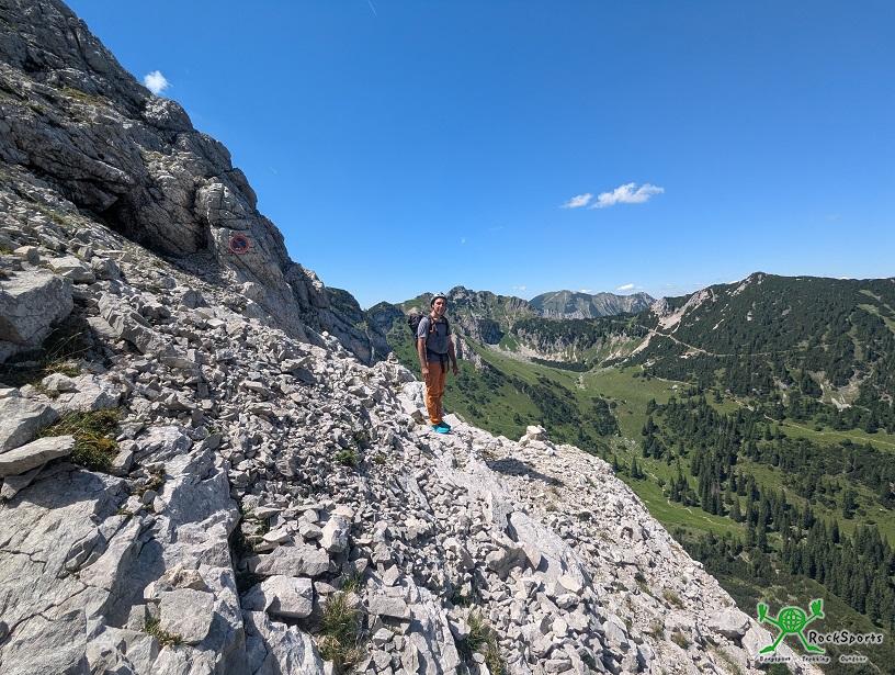 Die Geröllrinne hinab zu den Latschen lief richtig gut. Leider haben wir nicht die richtige Latschengasse erwischt und somit die zweite