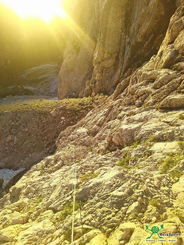 Fixseile (an einer Stelle bereits vom Steinschlag abgeschlagen) angebracht worden.