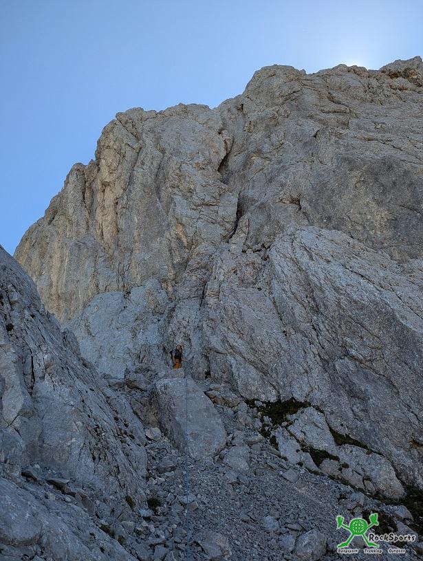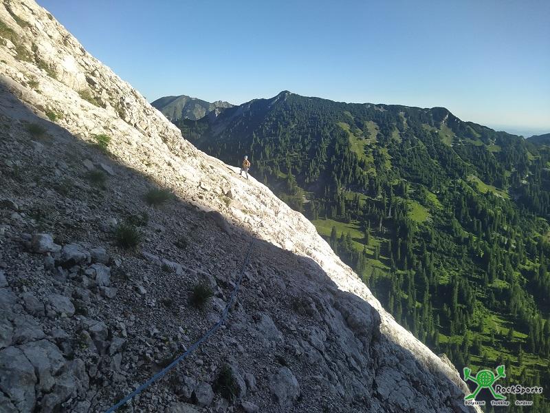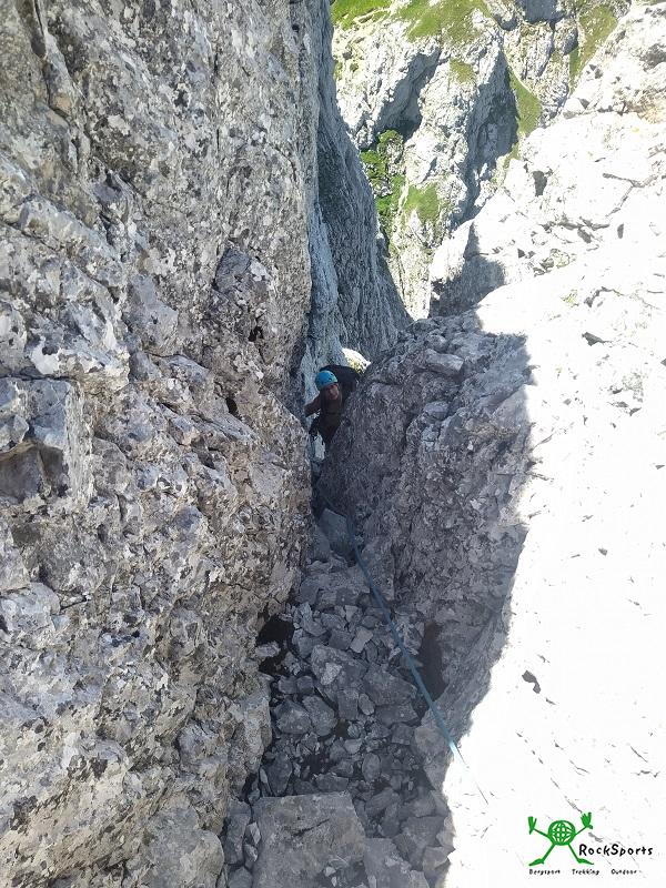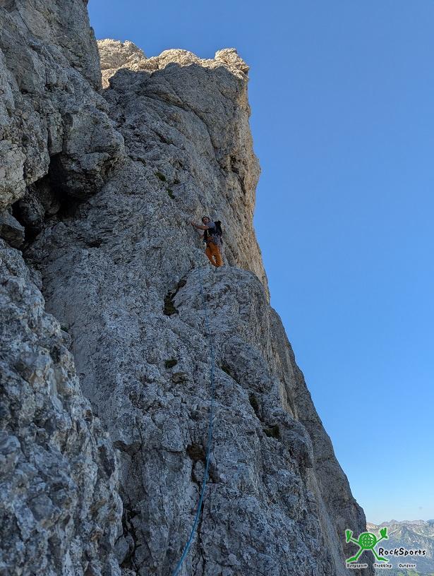 nicht und man klettert in einfachem Gelände zwischen dem 2. und 4. Grad evtl. ohne Zwischensicherung simultan. Dabei sollte