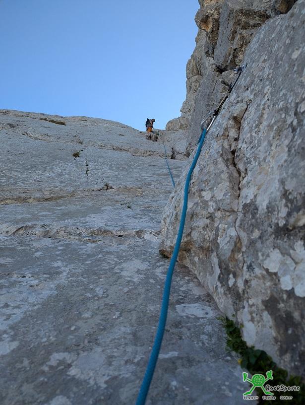 Jetzt kam kurz schöne Kletterei in der Verschneidung und wir bezogen an einem Bohrhaken und NH Stand.
