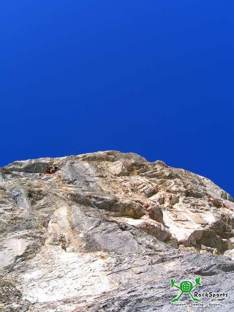 Die Seillängen enden immer auf kleinen Bändern. Das stört aber gar nicht, sonder ergibt immer einen bequemen Standplatz.