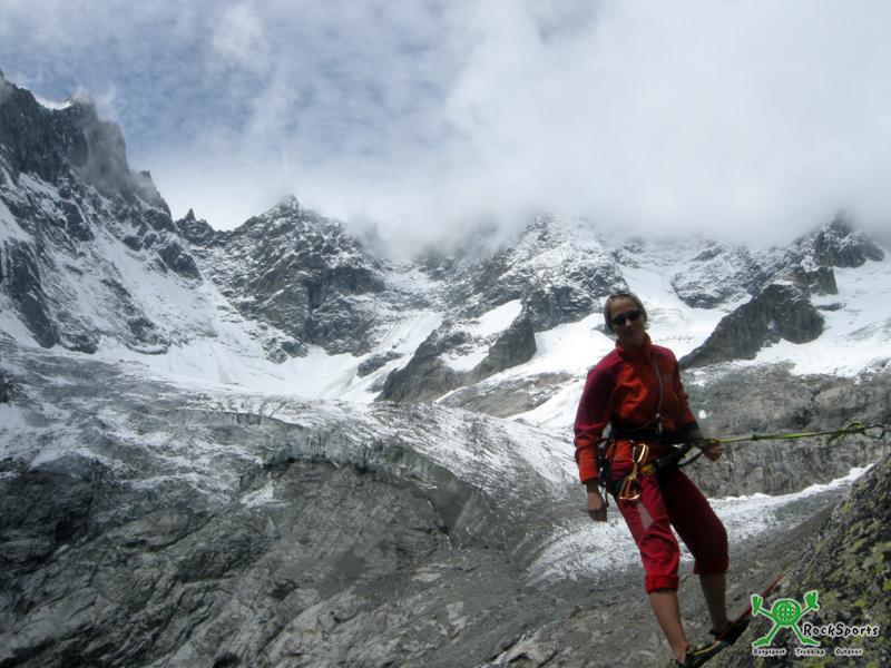 Genussklettern und viele Plaisirtouren in einer wilden, vergletscherten Hochgebirgslandschaft bietet das Umfeld um das kleine aber feine Refugio Dalmazzi (2590 m) auf der Südseite des Mont Blanc Massivs. Die Mont Rouges de Triolet bieten gewaltige rötliche Granitwände mit Klettertouren bis 800 m Länge. Gemeinsam mit Anne und Tim verbringen Nina und ich 2,5 schöne Tage im Granit des Refugio Dalmazzi, auch wenn die lange Tour „Les chamois volants“ im Graupelregen leider abgebrochen werden musste. Es soll einfach ein wenig das Gebiet vorgestellt werden: