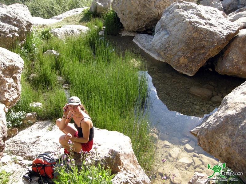Gegen 15 Uhr kommt plötzlich Bewegung auf und der große Aufstieg beginnt. Für Sportkletterverhältnisse wartet nämlich auch noch ein sehr langer Zustieg. Zwischen 50 min und 1 h 15 min gilt es steil bergauf zu steigen. Noch immer ist es drückend heiß, aber man will ja zu Beginn der kühleren Abendstunden schon am Fels sein. Nach dem schweißtreibenden Aufstieg gönnen wir und kurzerhand noch ein Bad in einer kleinen Gumpe unterhalb des Cascade (Wasserfall). Auch wenn im Hochsommer nicht gerade viel Wasser läuft. Vom Sektor Cascade geht es für uns nach links zum sektor Golots à Gogo. Das hier wirklich seltener geklettert wird sieht man schon am teils verwucherten Weg.