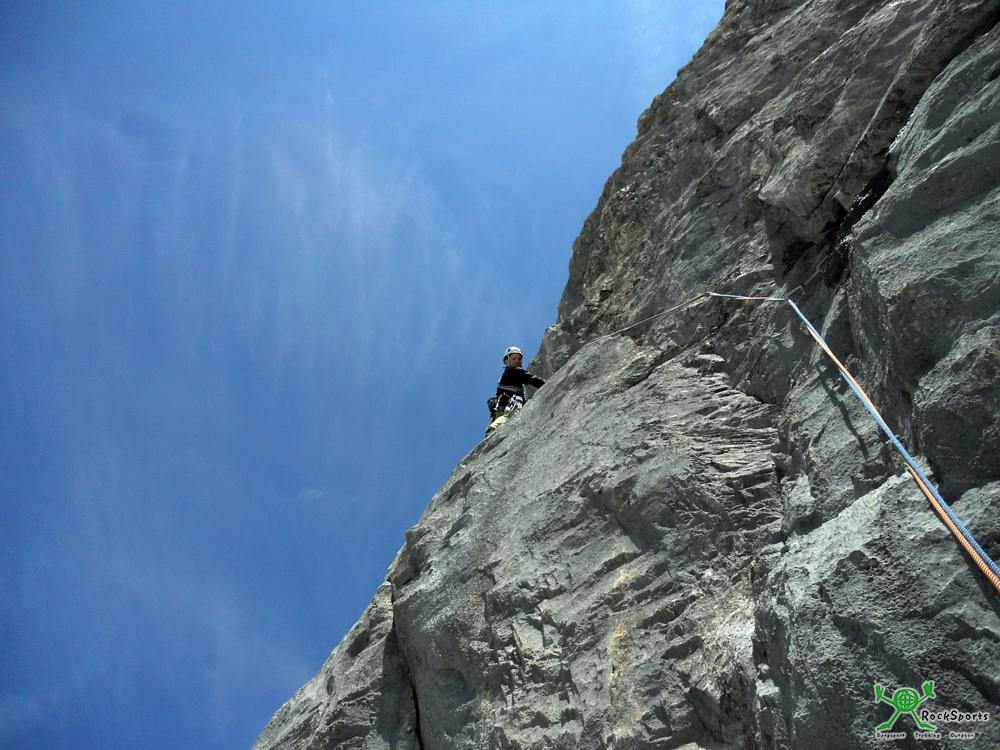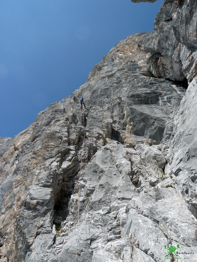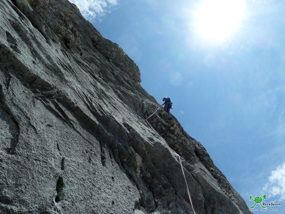 Bericht, viele Infos über die Tour und die Seillängen, sowie Topo, Wandbild und was wir sonst noch so erlebt haben (Steinschlagsalven, durchtrenntes Seil...) im genialen Kletterblog von Marcel Dettling unter: