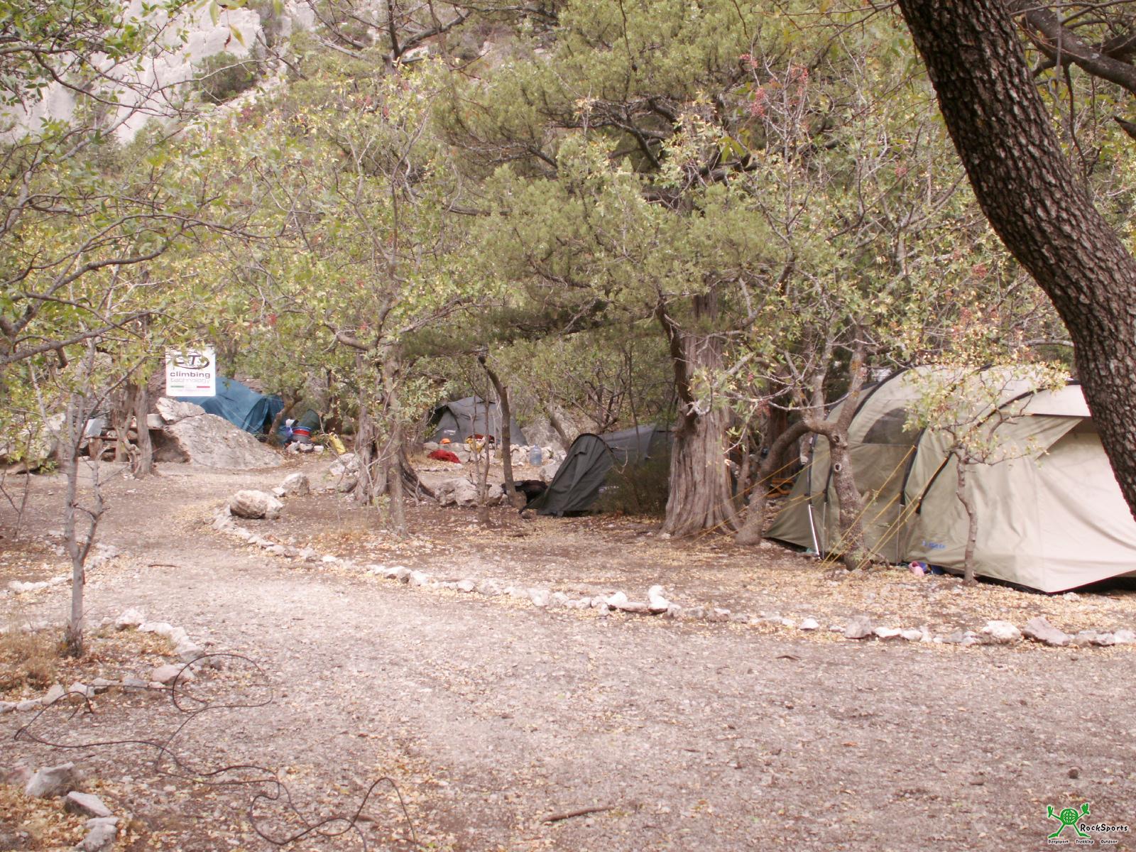 Werft jetzt erstmal eure westlichen Vorstellungen von einem straff organisierten, kommerziellen Campingplatz über Bord! Das Ganze gleicht eher einem Kinder-Sommercamp in dem die kleinen Racker das Kommando übernommen haben, weil, die Aufseher wasweißich… von Bären gefressen wurden oder so! Die wahr gewordene Fantasie eines romantischen Räuberverstecks, nur, dass die Bewohner statt grüner Stumpfhosen, Gore-Tex Klamotten tragen. Und statt mit Pfeil und Bogen, die ganze Zeit mit ihren Exen und Karabiner rum hantieren.