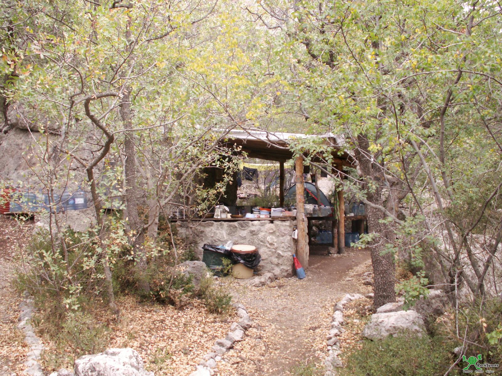 Es ist alles da was man braucht. Es gibt Duschen, gespeist von zwei riesigen Wassertanks. Zwei Plumpsklos hat’s und einen…ich nenne es mal Küchenpavillon mit Gaskochern, Spülbecken, Trinkwasserkanistern, allerhand Geschirr, das zurück gelassen wurde und Bouldergriffen an der Decke. Strom gab es auch, abends zwischen 19 und 21 Uhr ungefähr (wer einen akkubetriebenen Rasierer hat ist klar im Vorteil!).