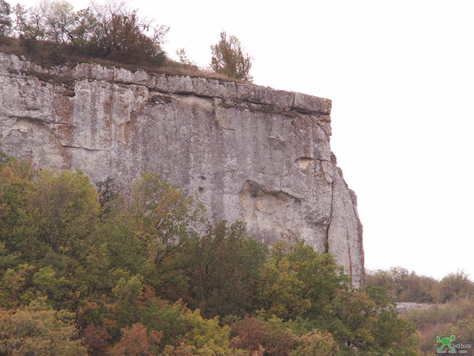 Vom Kloster aus führte ein Weg über die Klostergärten und einem Wäldchen in Richtung der Höhlenstadt Tschufut Kale. Am Wegesrand kann man an Marktbuden allerlei Zeug kaufen, was man so brauchen kann, oder auch nicht…eher nicht. Als Nataliya mir von einer Höhlenstadt erzählte, dachte ich mir, meine Güte, da sieht man halt ein paar große und kleine Höhlen mit verfallenen Hütten drum herum. Aber als wir aus dem Wäldchen kamen, lag vor uns auf einer Anhöhe ein riesiger Felsriegel, durchzogen von unzähligen Löchern, Höhlen und Mauern.