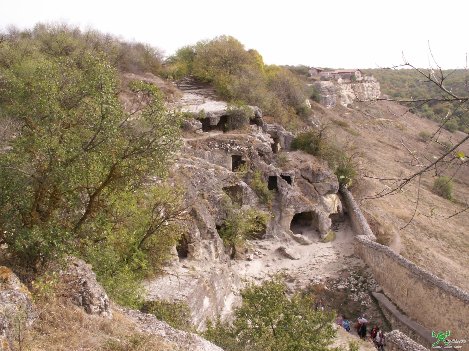 Das Plateau ist riesengroß, dessen Wände fast rundum senkrecht abfallen. Am Eingang wurden die Stadtmauer und das Stadttor wieder aufgebaut. Man kann die ganze Anlage auf eigene Faust erkunden, es gab zwar auch Führungen, allerdings auf Russisch. Ich hatte ja Nataliya dabei, sie erklärte mir viel und wir hatten jede Menge Spaß.