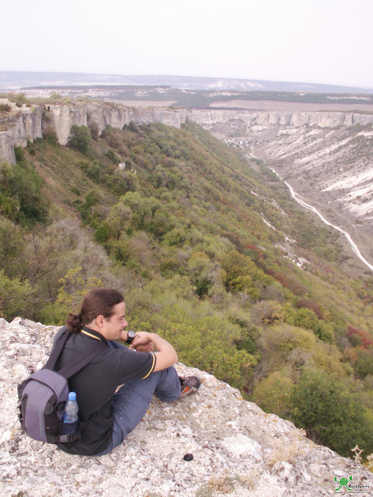 Wir ließen nicht viel Zeit verstreichen und versuchten gleich das Seil ab zu ziehen, da wir uns die folgenden Meter am Abstieg auch noch mal abseilen mussten. Aber das Seil gab keinen Millimeter nach. Es hing an der Felsnase fest. Also kletterte ich, mit meinen 8er und durch einen Prusik gesichert, wieder hinauf um das Seil, ja ich weiß, einige von euch werden jetzt die Hände überm Kopf zusammen schlagen, durch einen Blechbohrhaken zu fädeln. Daran seilte ich mich erneut ab. Was will man sonst machen in dieser Situation? Es gab halt dort nichts anderes. Auf dem Weg zum Camp hab ich sie immer wieder gefragt, ob alles in Ordnung sei, und wie es ihrem Bein gehe. Ich erhielt immer die gleiche Antwort, sie wusste es nicht! Aber immerhin konnte sie noch Laufen. Das war schon mal ein gutes Zeichen. Bei den Zelten angekommen, sprach sie sehr lange mit Mischa. Später sagte Nataliya, dass sie die Telefonnummer der Bergrettung von Sewastopol in ihrem Telefon gespeichert hat. Ich war ziemlich müde und der Schreck steckte mir noch gehörig in den Knochen, darum suchte ich mir einen großen Kuschelfels, auf dem ich dann eindöste.
