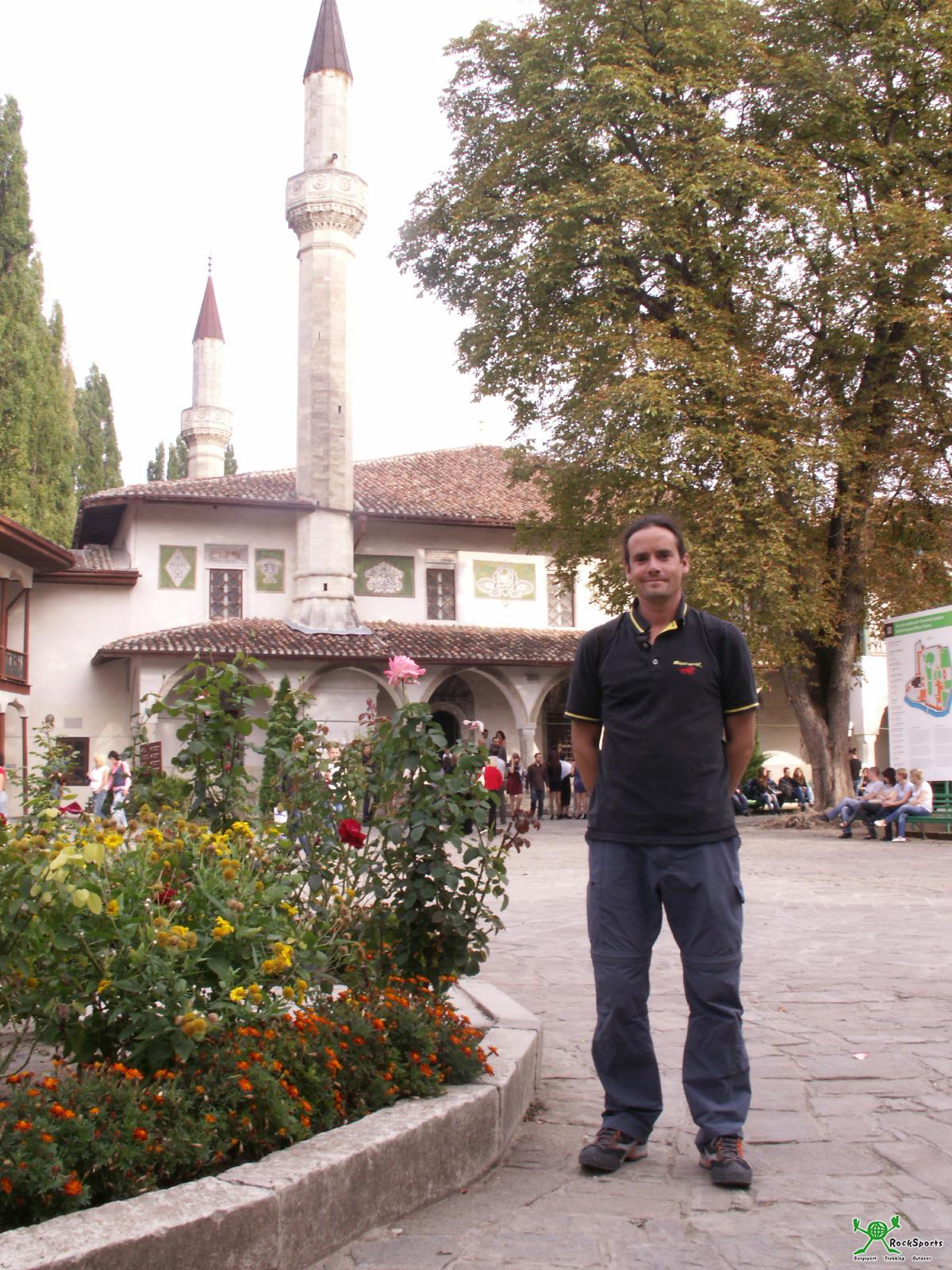 Nachdem Rinder- und Hammelschaschlik zu meinem bedauern aus war, bestellte ich mir ein leckeres Leberschaschlik, nicht lachen! Das war wirklich lecker, und reichlich noch dazu. Vollgestopft mit Unmengen Leber, Bratkartoffeln, Fladenbrot und Gemüse, spazierten wir zum Kahnspalast nahe dem Zentrum von Bachtschyssaraj. Unterwegs kamen wir an einem Markt und einigen Cafes vorbei. Auch wenn die Stadt mit seinen flachen Häusern und staubigen Straßen selbst auf den zweiten Blick einen stark heruntergekommenen Eindruck erweckt, ist sie dennoch voller Leben. Dank dem Kahnspalast, dem Kloster Uspienski und Tschufut Kale, ist der Fleck hier ein sogar ein kleiner Touristenmagnet. Während wir noch auf dem Markt herum schlenderten rief der Muezzin über einen Lautsprecher zum Gebet auf.
