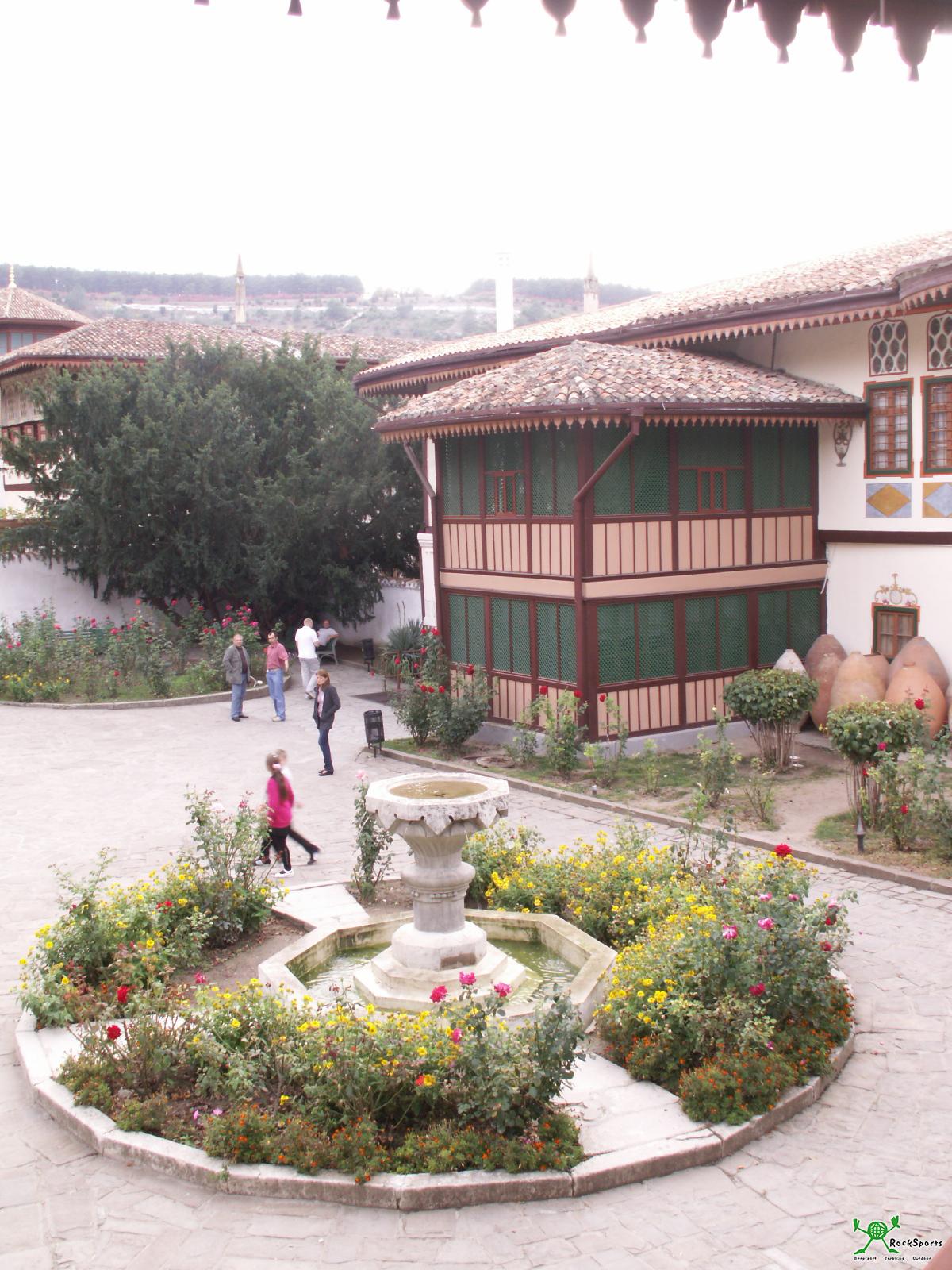 Der Kahnspalast ist eigentlich ein Haremspalast, in dem die Frauen des Kahns Sahib I. Giray im 15. Jahrhundert lebten. Im Innenhof des Palastes sind kleine Teiche und Brunnen, die Wände des Hauptgebäudes war mit Arabischen Schriftzeichen verziert.