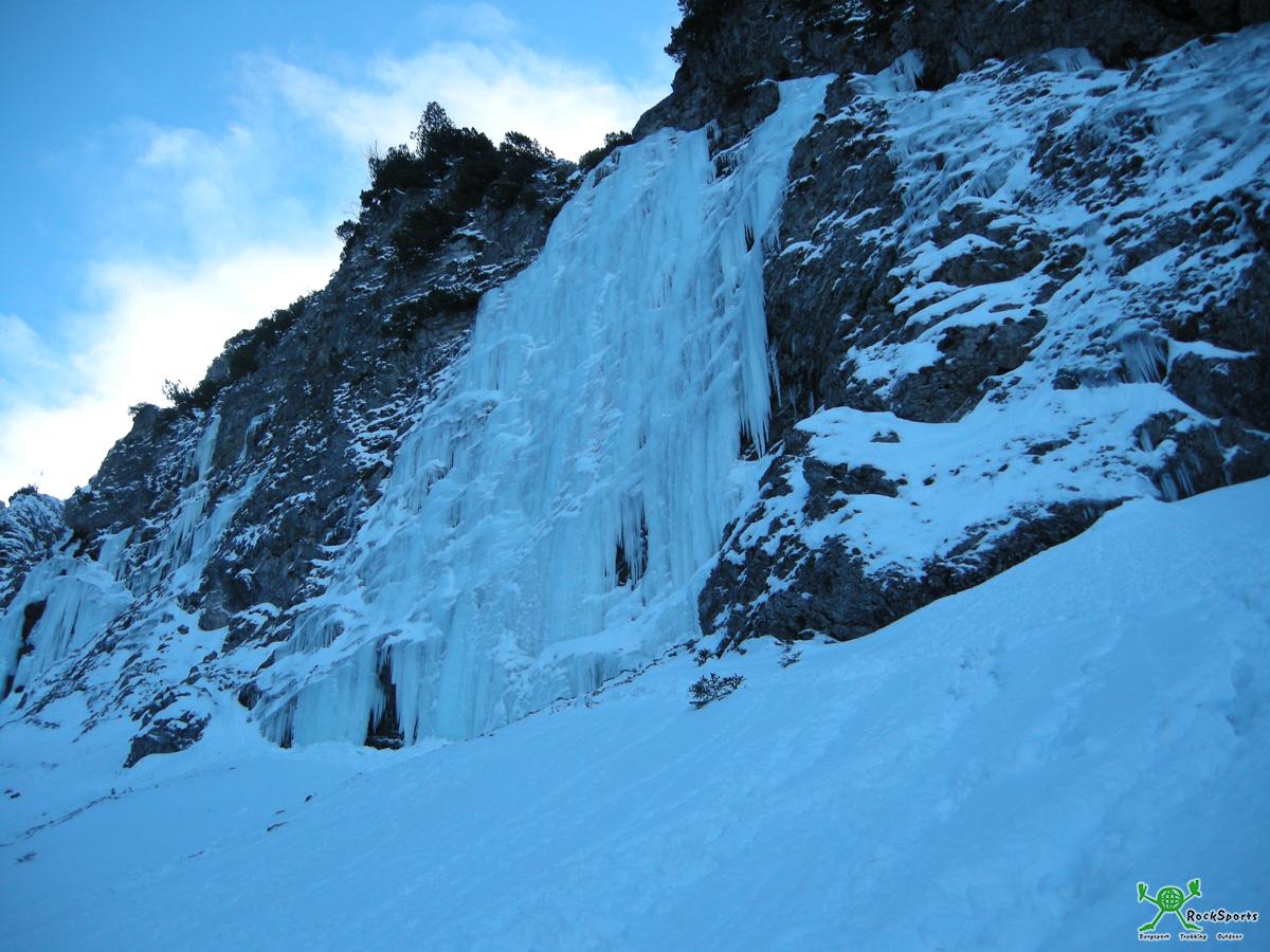 Nachdem das Eis im Allgäu nach wie vor sehr mager bzw. teils gar existent ist müssen halt mal wieder die altbekannten Verdächtigen herhalten, wie z.B. der klassische Untere Gaisalpfall. Die diesen Winter 12/13 immer wiederkehrenden massiven Wärmeeinbrüche haben das Eis in niederen Höhen nun schon zweimal wieder eliminiert und bis das alles wieder so wächst und gedeiht dauert…