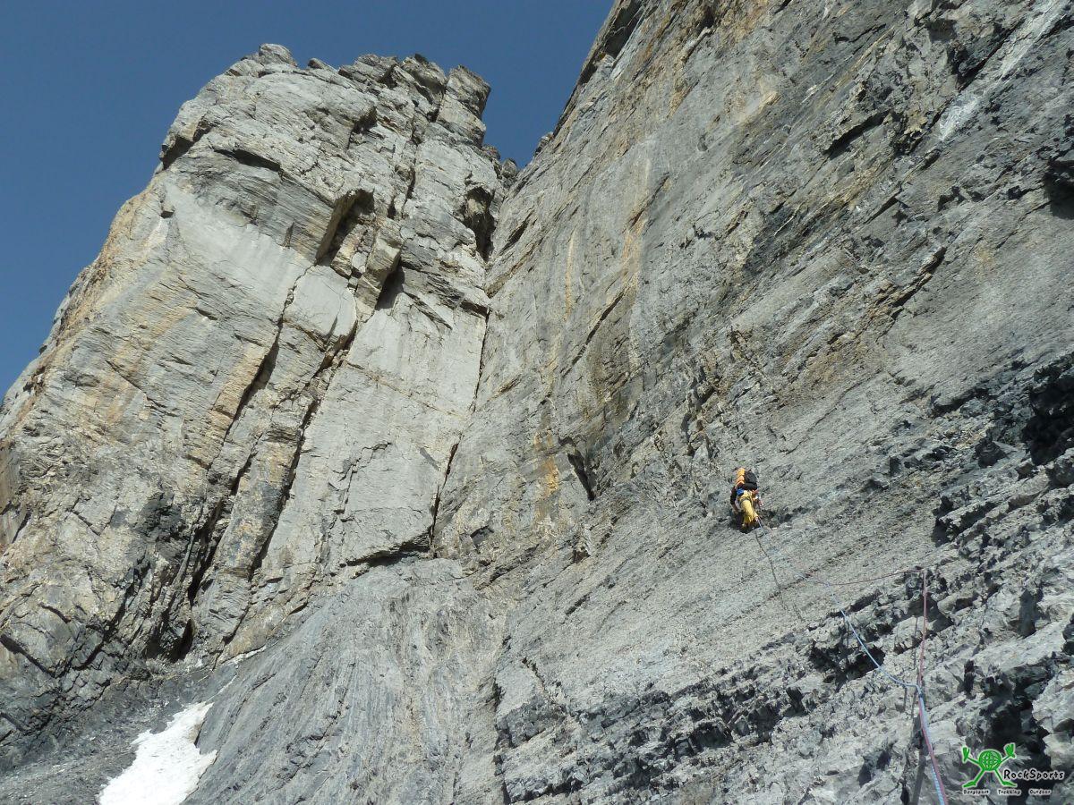 Du bist jetzt schon der zweite von dem ich von komischen Varianten in diversen Wandbereichen höre. Was habt ihr denn alle gegen die Original-Niedermannführe, dass man hier Kreuz und Quer auf irgendwelchen Varianten in der Wand herum klettert??? Mit der gängigen Literatur solcher Touren (in diesem Fall: SAC-Führer Textbeschreibung und Pause Anstiegsskizze) sollte ja die Groborientierung in dieser Wand nicht so schwer sein. Hat es ja doch überall markante Pfeiler, Kaminsysteme, Terrassen und Bänder. Die Detailorientierung auf die Seillänge heruntergebrochen habe ich in dieser Wand zwar auch sehr anspruchsvoll in Erinnerung, wie ich das Lese waren das aber schon gröbere Varianten und keine kleinen Verhauer bei euch.