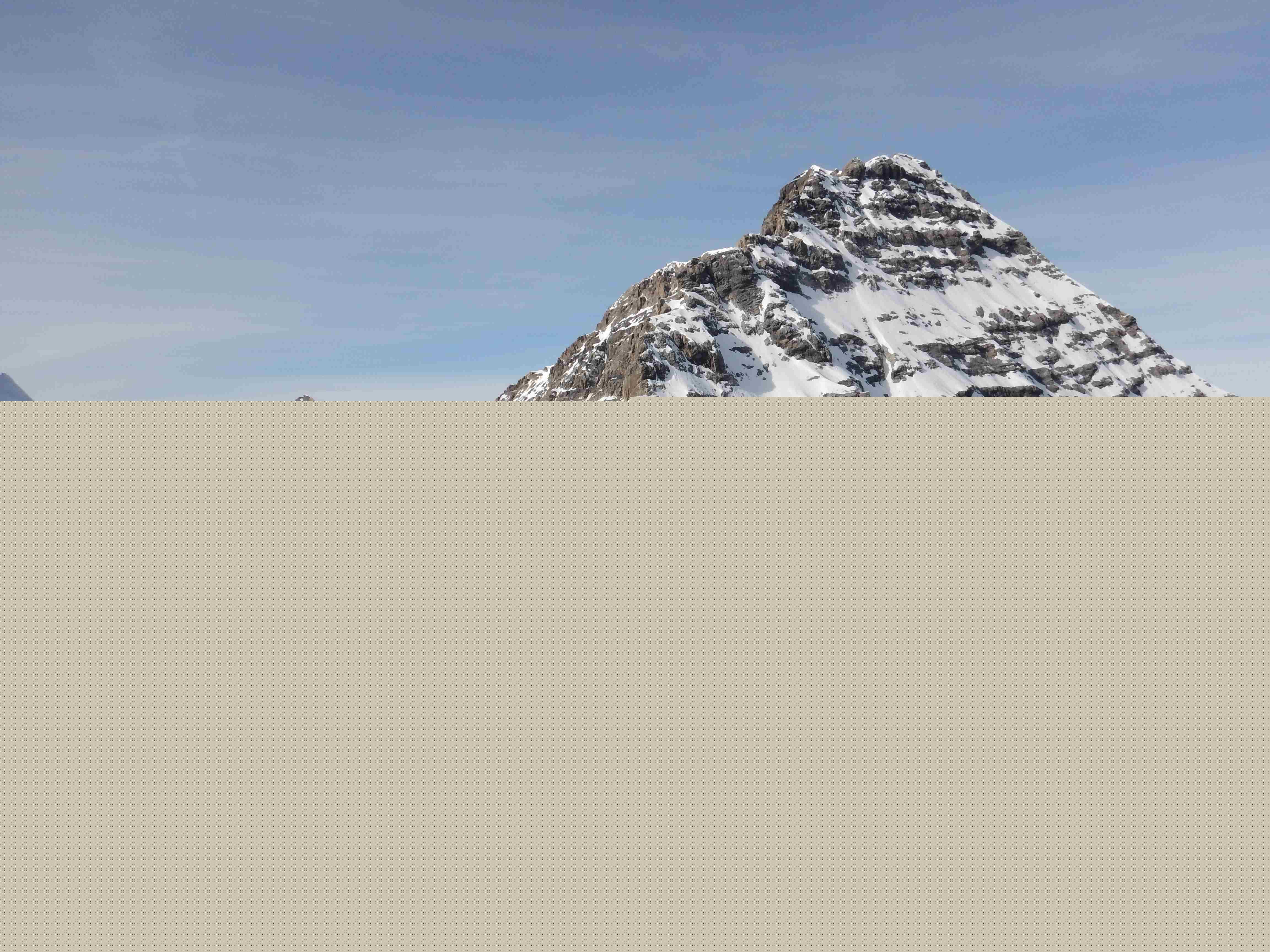 Die erste Hälfte des Grats ist ein sannftes auf und ab über Firn. die wenigen felsigen Aufschwünge sind einfach oder lassen sich unkompliziert umgehen. Allerdings spüren wir die Anstrengungdes gestriegen Tages und die Qualität des Schnees bewegt sich mehr und mehr von Trittfirn zu Bruchharsch.