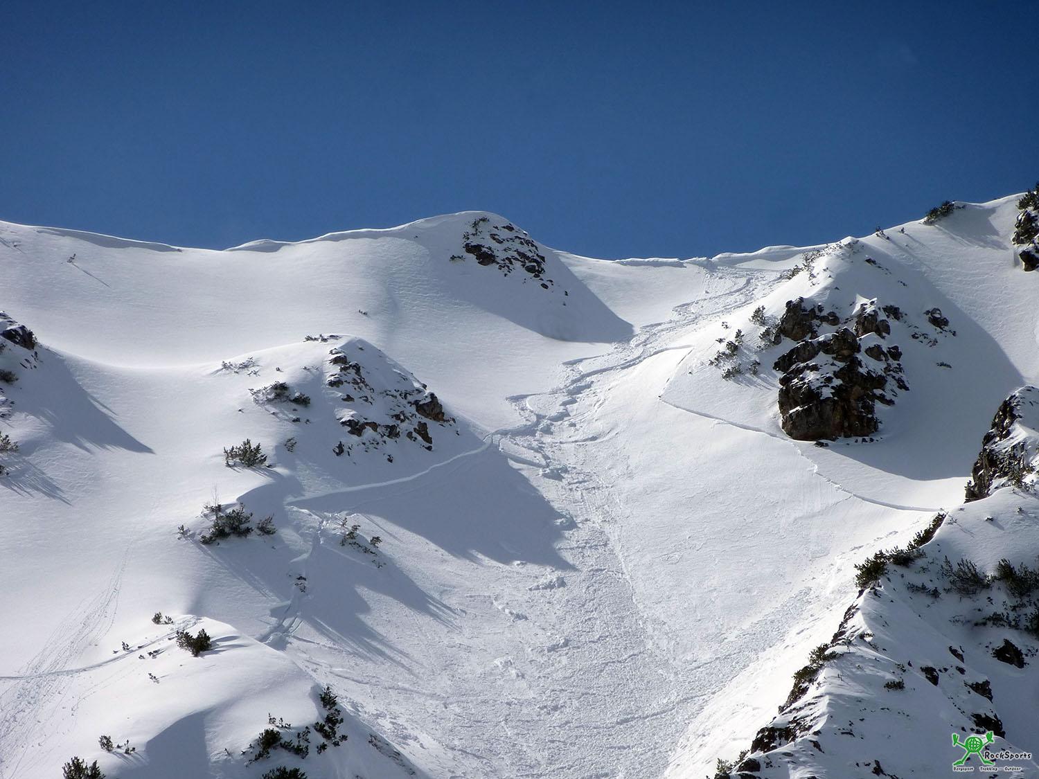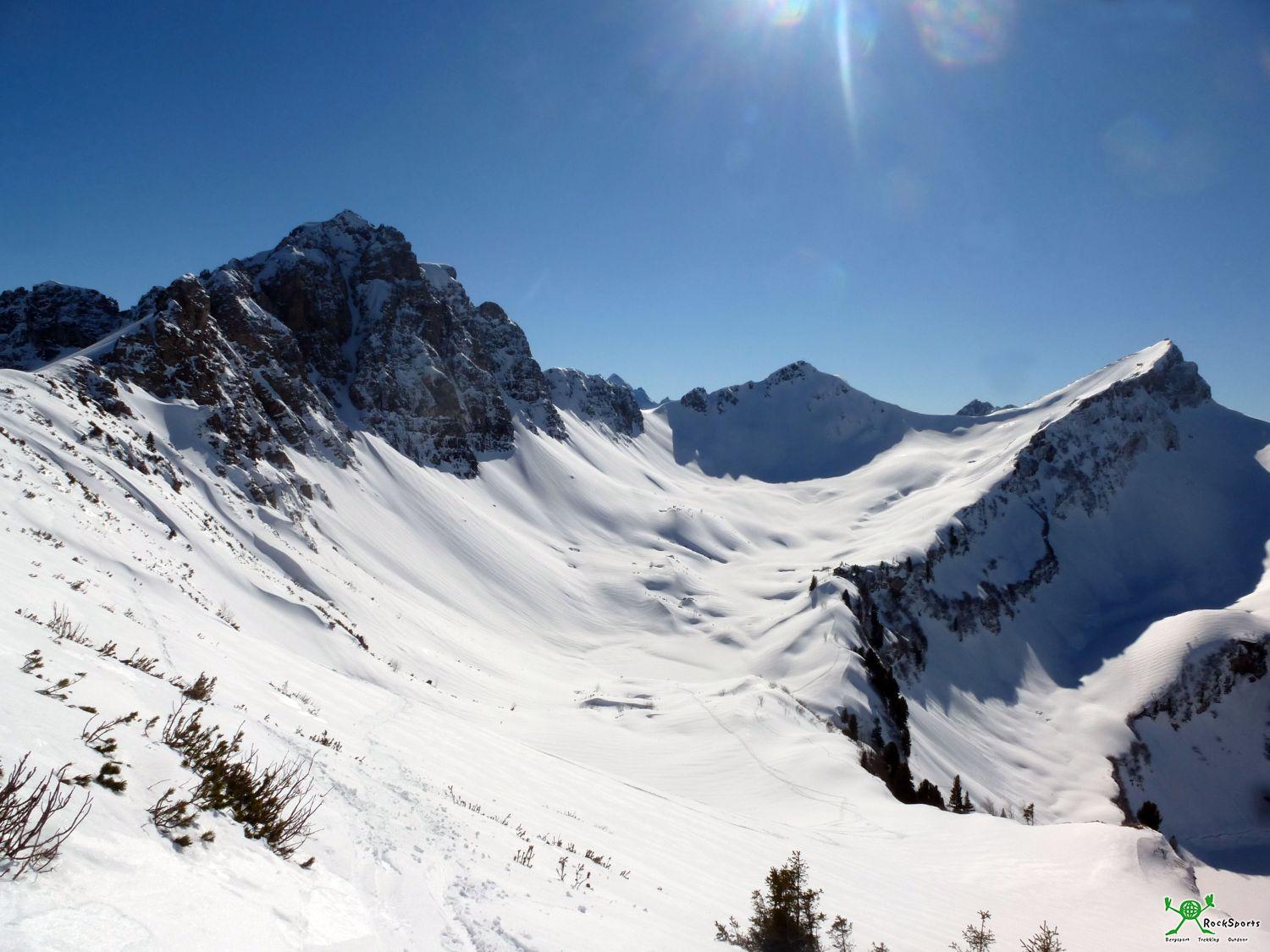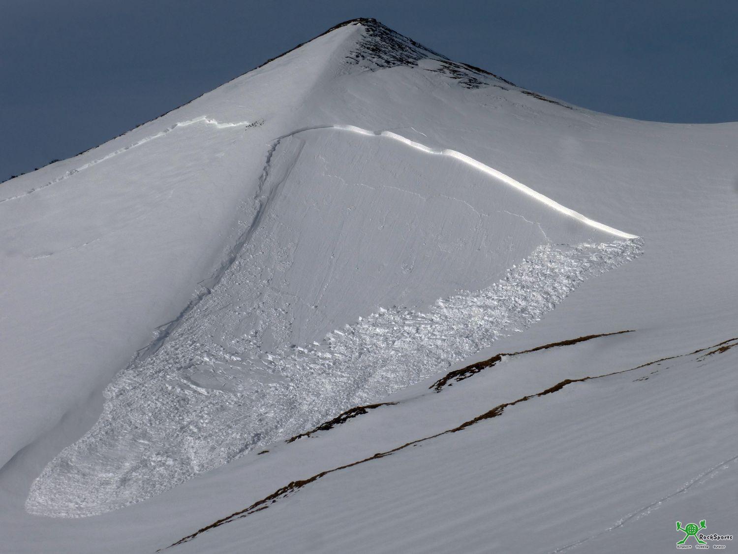 Im Bereich der Strindenscharte dann der erste Abgang. Zwei Skifahrer hatten großes Glück, einer der beiden wurde erfasst, konnte aber glücklicherweise noch nach rechts aus den Schneemassen rausfahren.